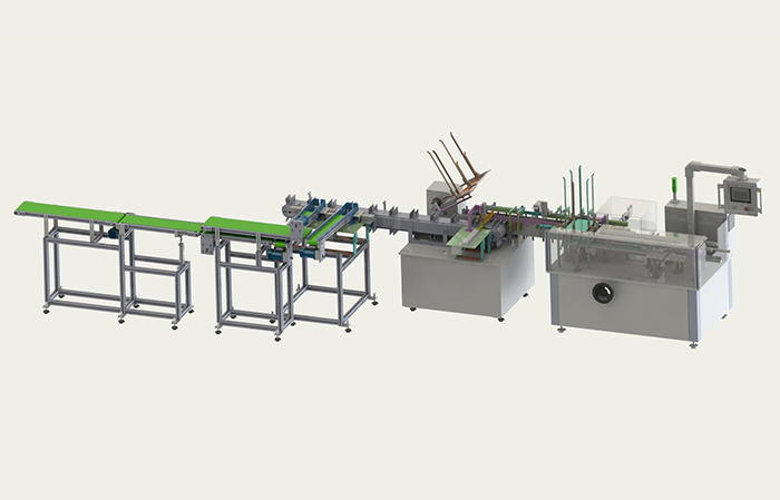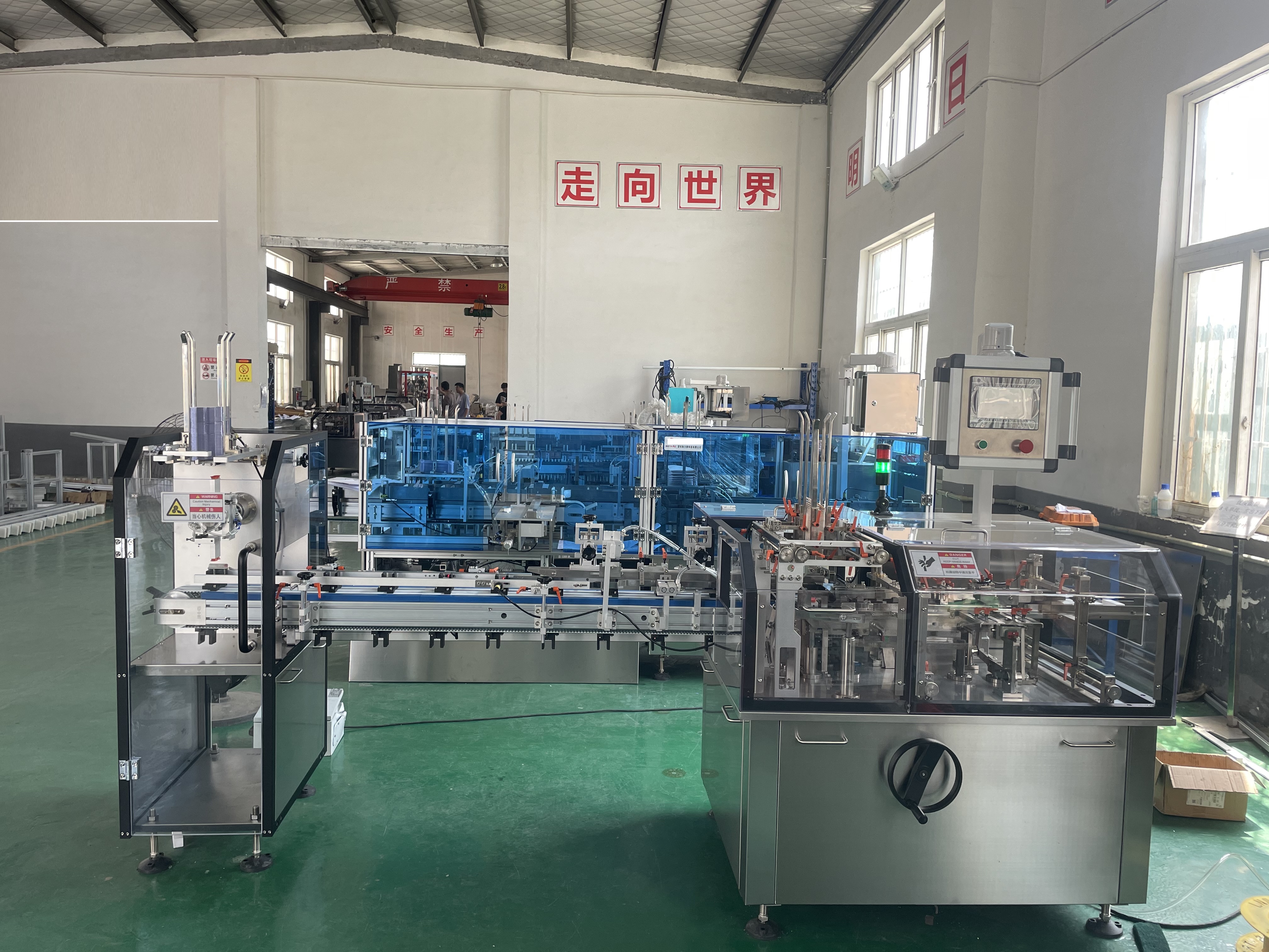 HLT-HY81N(單臺(tái)8頭)與8頭灌裝機(jī)+內(nèi)襯裝盒機(jī)連線,有三個(gè)輸送系統(tǒng),一個(gè)加速機(jī)構(gòu)組成