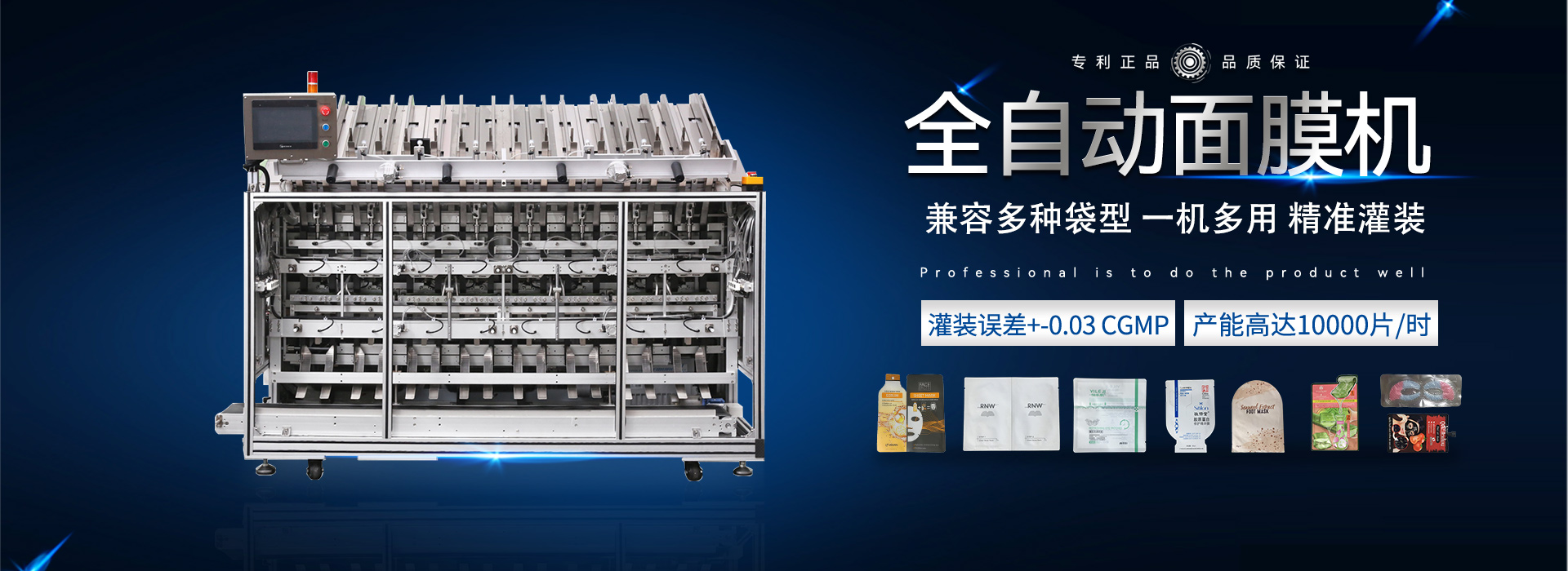 本產(chǎn)品是從事面膜產(chǎn)品的充填和封裝一體化的專業(yè)設(shè)備,具有衛(wèi)生,環(huán)保,高效,節(jié)省人力成本,占地面積小等特點。全觸摸屏+plc控制,動作高效,迅速,簡潔,四頭理論速度可以達(dá)到7200片/小時,十頭更多